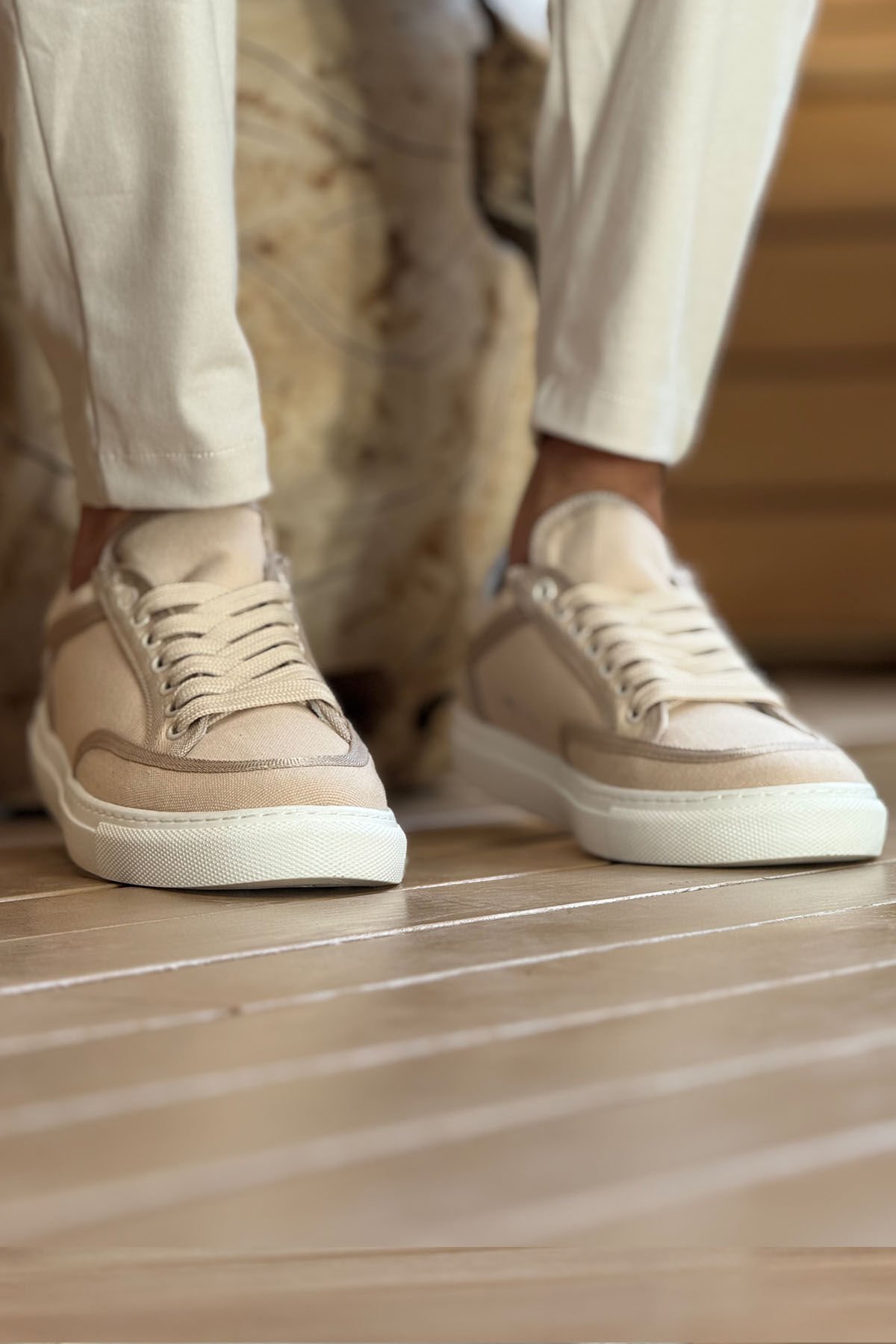 MN2505 - Keten Erkek Ayakkabı BEJ/BEJ