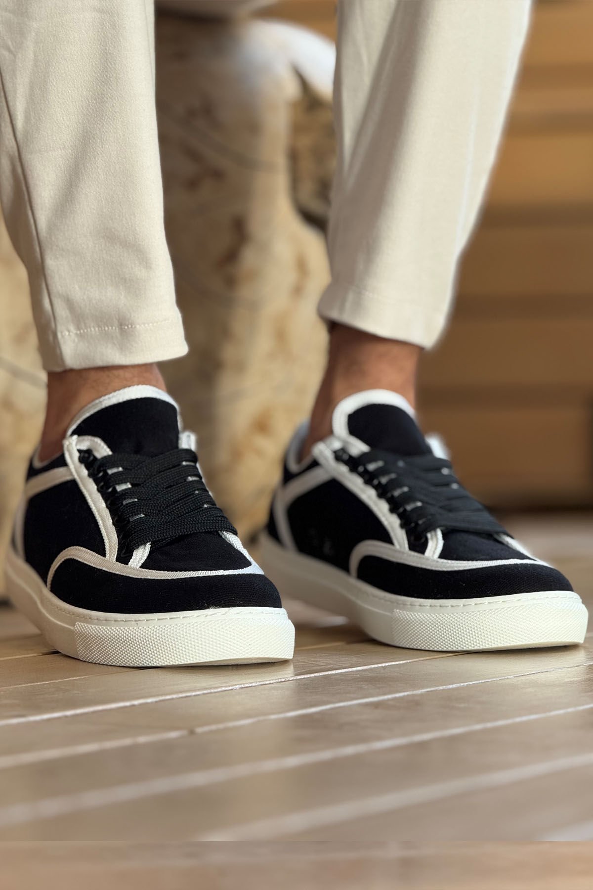 MN2505 - Keten Erkek Ayakkabı SİYAH - BEYAZ